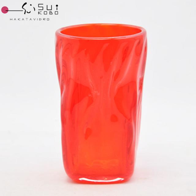 【博多びーどろ 粋工房】 沖ノ島朱 グラス 高さ約9.5cm ガラス製 NM-11 【日本製】 森田菜生製作 杯 タンブラー 贈答品 コップ お祝い ガラス 縁起物 ビール 酎ハイ ハイボール レッド 赤 朱