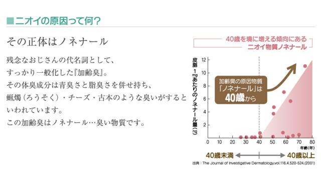 年齢を重ねるにつれ、皮脂の酸化への抵抗力が弱まり、この物質が発生しやすい状態になります。