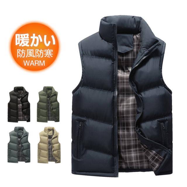2点購入で3%OFF 中綿ベスト ベスト メンズ ジャケット 立ち襟 チョッキ ゴルフウェア 秋冬服 インナー 軽量 防風防寒 撥