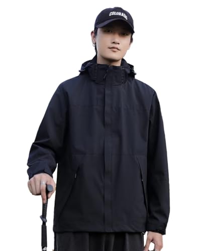 Nesseo ウインドブレーカー マウンテン ジャケット メンズ ゆったり 春秋冬服 軽量 撥水 防風 フード付き(脱着式) 大きいサイズ アウタ