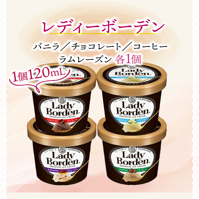 ・レディーボーデン:4種類の濃厚なアイスクリームを楽しめるセットです。