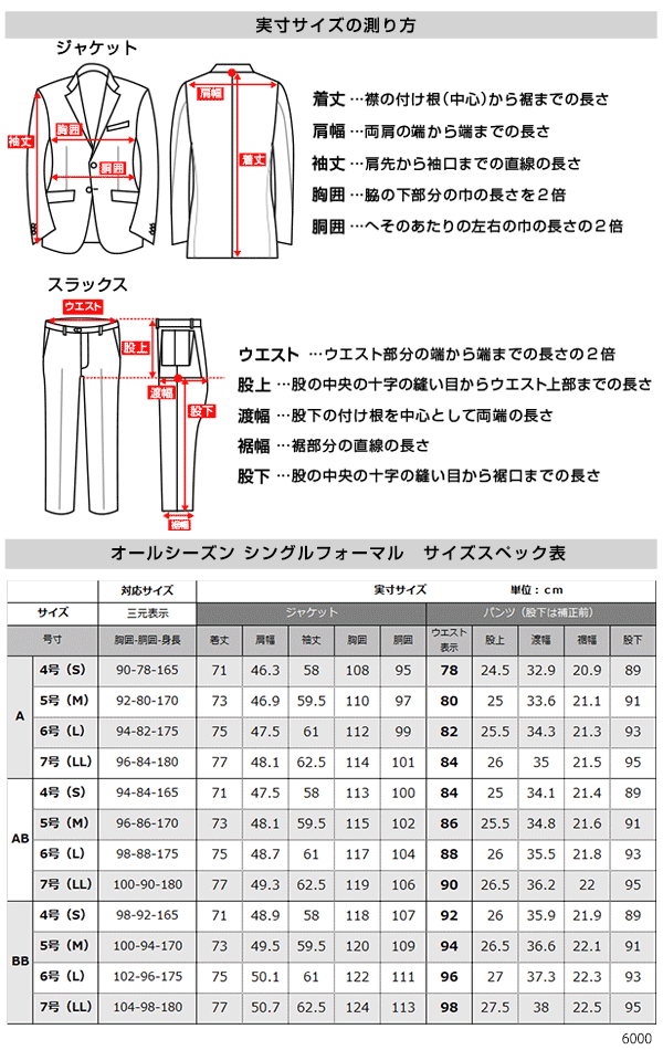 AB体4号(S) AB体5号(M) AB体6号(L) AB体7号(LL)