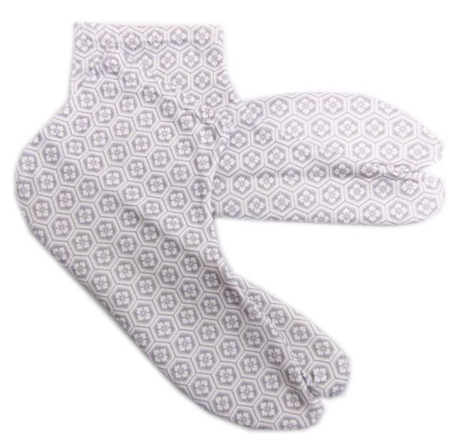 足袋 柄 ストレッチ メンズ 男性 紫グレー地亀甲花菱 フリー 25〜27cm 日本製 カジュアル 着物 きもの 男物 紳士用 オーガニック