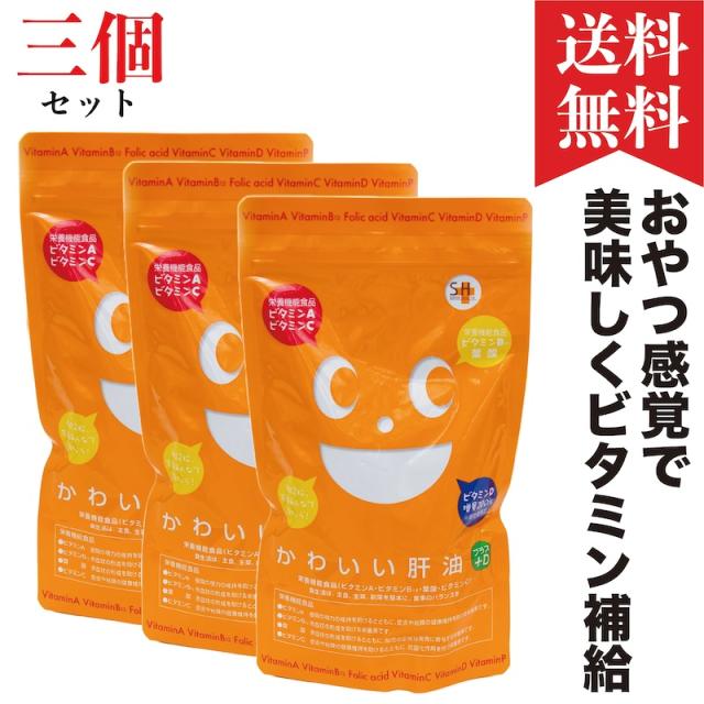 噛んで食べるビタミン グミ サプリ 3袋セット 子ども マルチビタミン 国産 かわいい肝油 プラス+D ビタミンA B12 C D 葉酸 栄養機能食品 オレンジ風味 賞味期限2027年1月