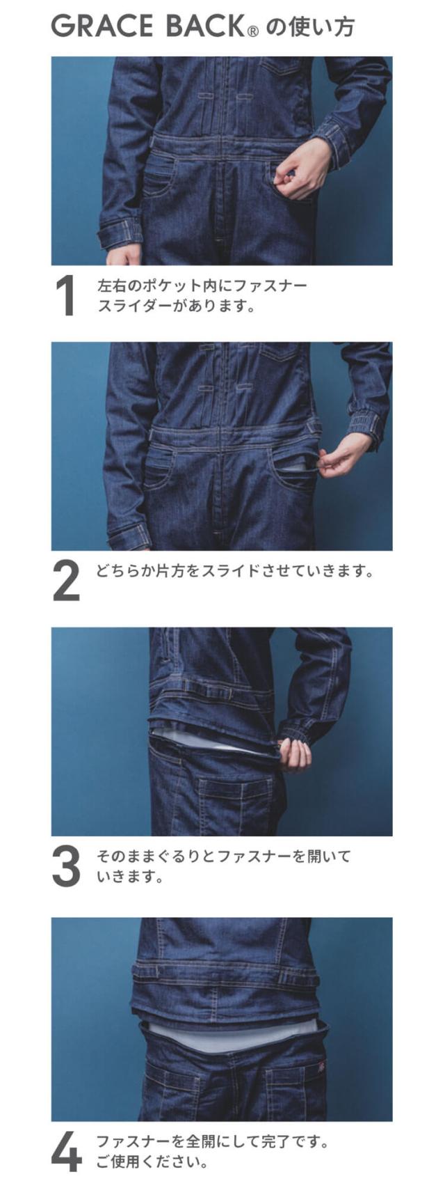 ○コイルファスナー/左胸・パンツ右後・前立て・ヒップオープン
