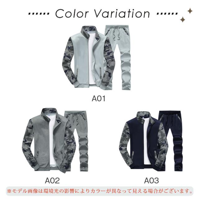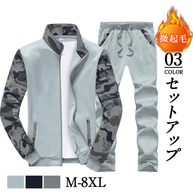 セットアップ スウェット メンズ 微起毛 迷彩柄 立ち襟 運動着 秋冬 ジャージ長袖 ルームウェア 部屋着 ジップパーカー ストリ