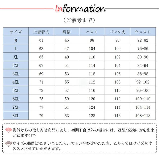 サイズ:/M/L/XL/2XL/3XL/4XL/5XL/6XL/7XL/8XL
