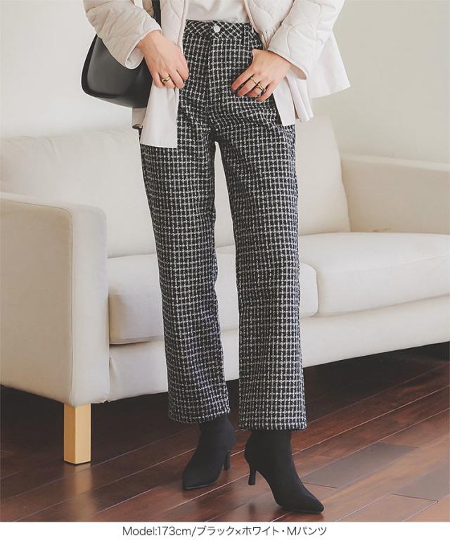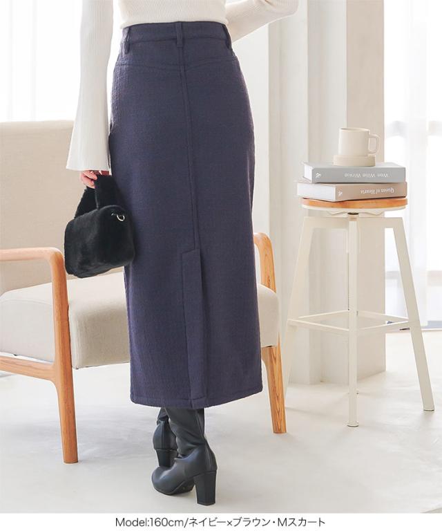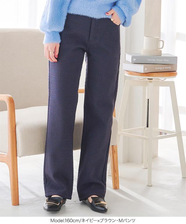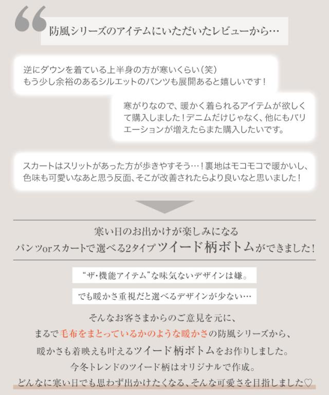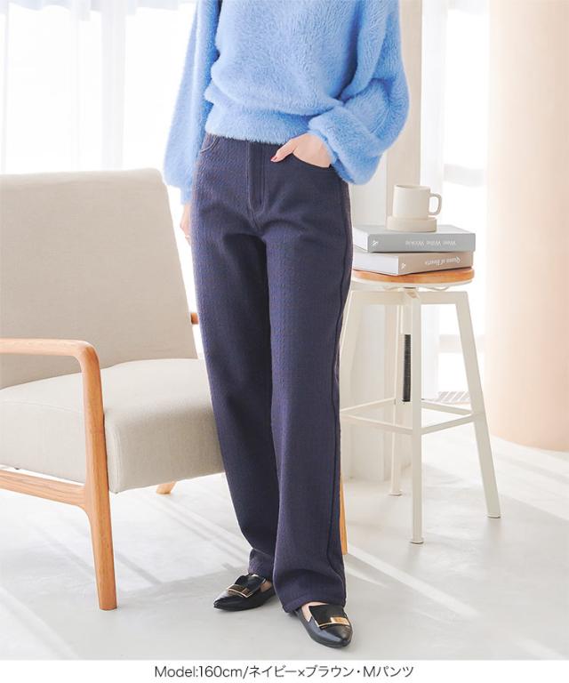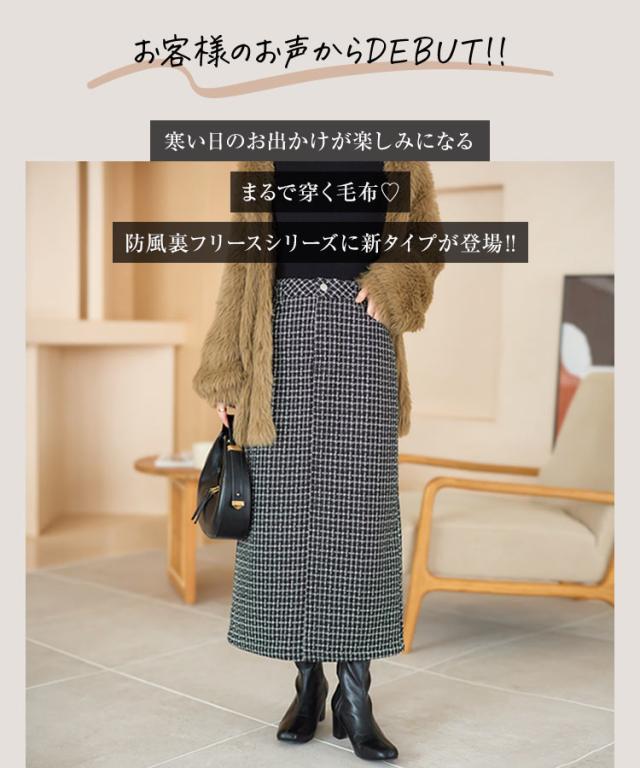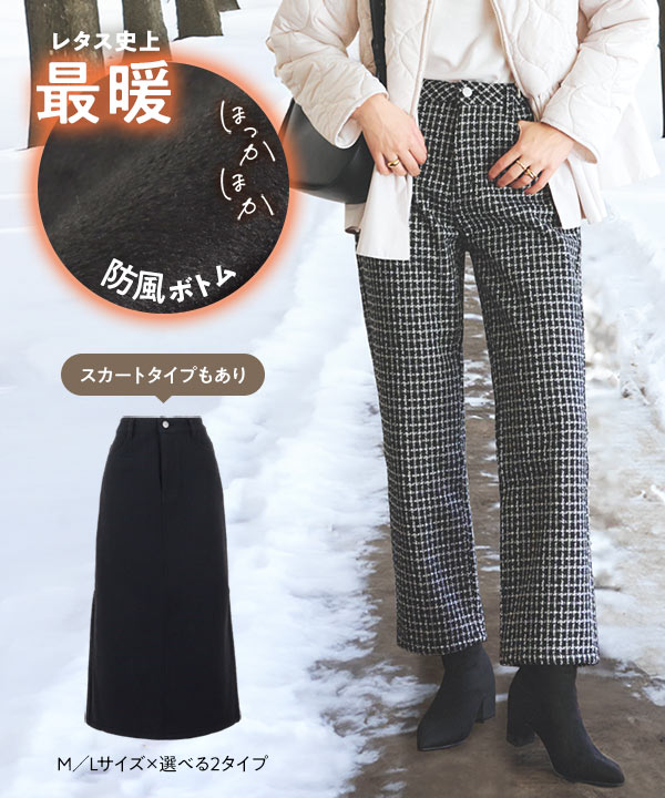 春新作 [ 裏起毛 ] 防風裏ファーツイードパンツorスカート M3973 入荷済レディース 20代 30代 40代 裏ファー ロングパンツ ロングスカート レタスオリジナルサイズ 極暖 防寒 ストレート ポケット 暖かパンツ 暖かスカート 旅行