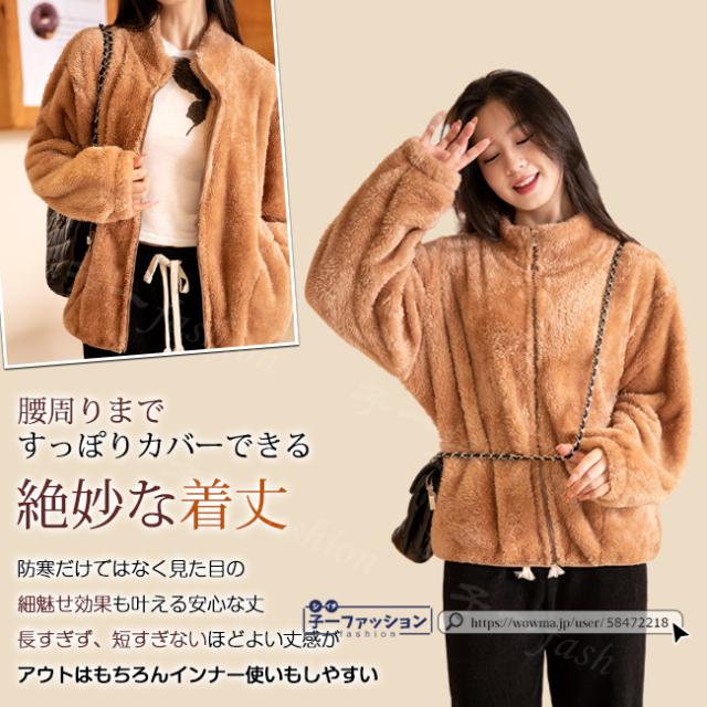 ブルゾン ボアジャケット レディース 冬新作 長袖 秋冬 ハイネック ゆったり ボア もこもこ おしゃれ 防寒 アウトドア 暖かい 保温 通気性 ふわふわ 可愛い シンプル カジュアル おしゃれ ボアコート 大人 学生 秋服