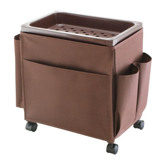 小物が落ちにくいバスケットタイプ<br>◆商品名:不動技研 サイドテーブルワゴン ミニラック ブラウン F-2530<br>商品紹介<br>リモコンなど小物類の整理に<br><br>●座椅子やソファーのサイドラ ックにぴったり。キャスター付きで移動もらくらく