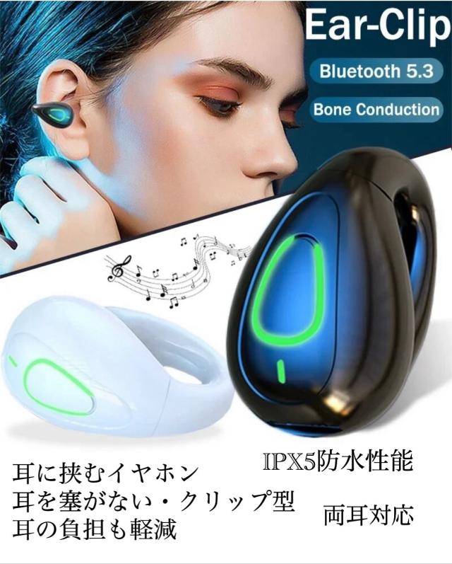 4 Bluetooth5.3 イヤホン ワイヤレスイヤホン IPX5 空気伝導イヤホン クリップ型 防水 耳掛け スピーカー マイク 片耳 USB 充電 超軽量 テレワーク