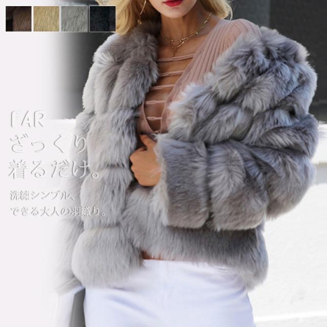 爆売中 フェイクファーコート レディース 毛皮コート ノーカラー フォックス襟 フェイクファー 高級 上品 ブルゾン ふわふわ 防寒 アウター 冬新作