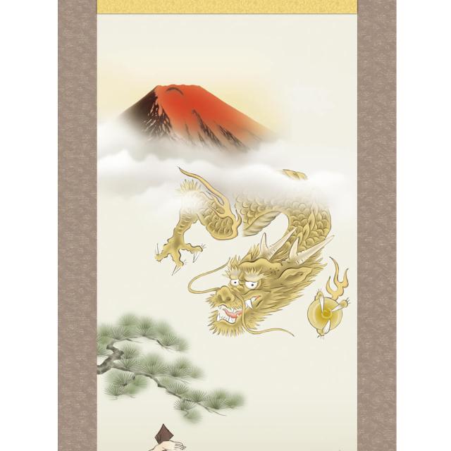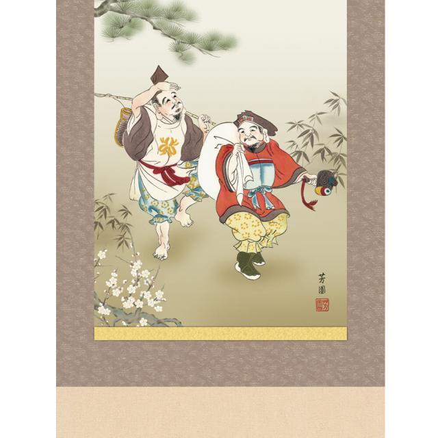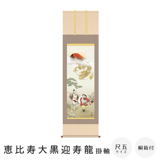 恵比寿大黒迎寿龍 掛軸 石田 芳園 尺五立 高精彩工芸画 手彩補色 掛け軸 掛軸 動物画 厄除け 干支 表装 軸装 桐箱