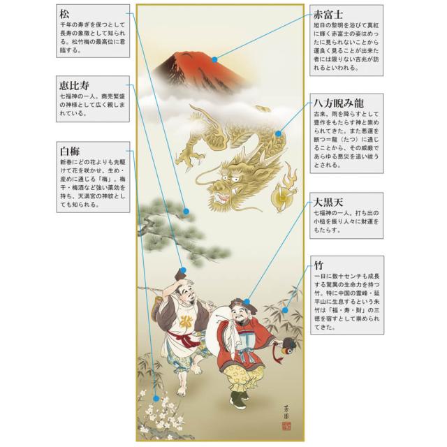 あらゆる開運縁起題材がこの一幅に描きこまれた、開運厄除け作品です。