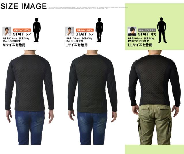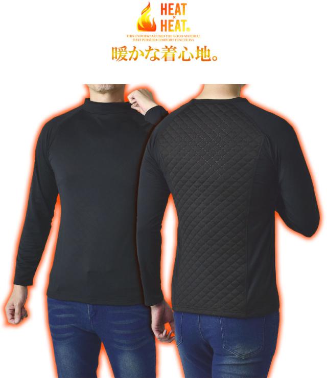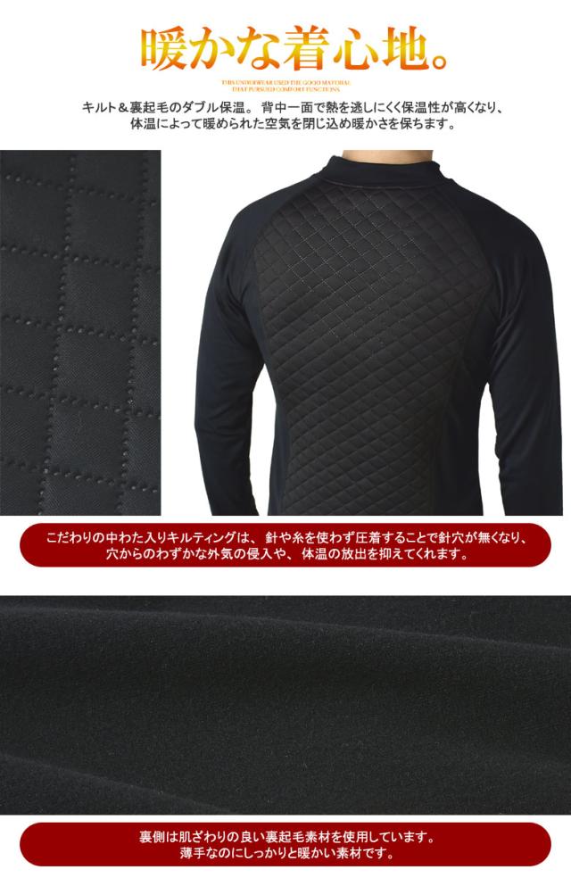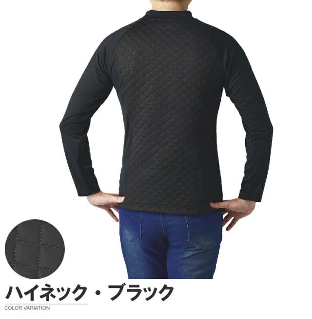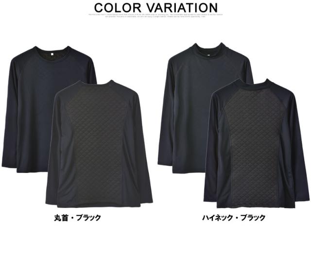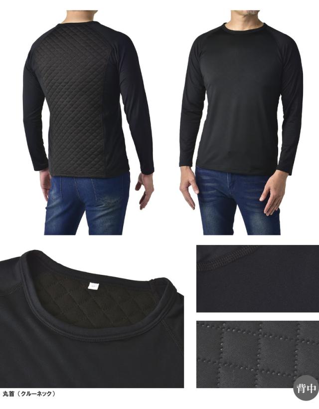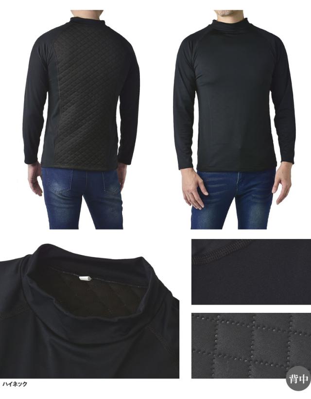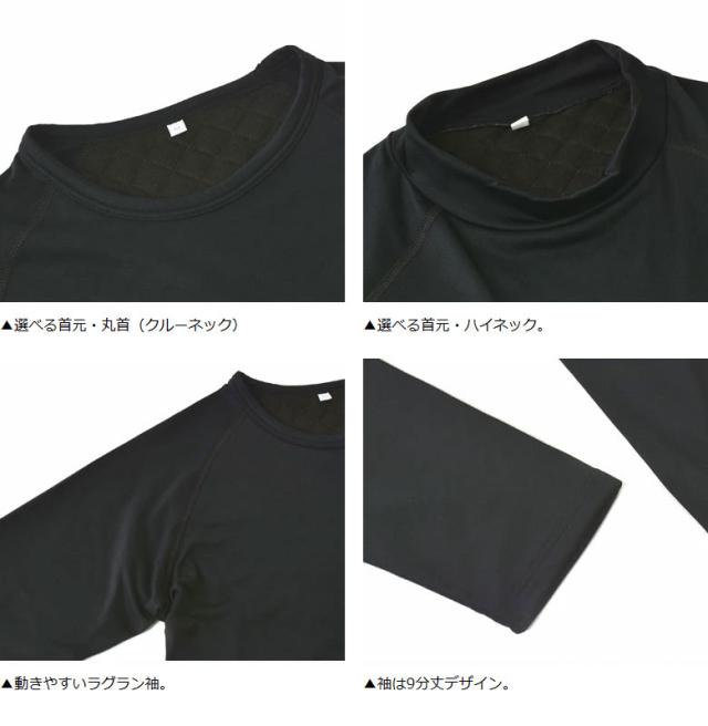 中綿キルティング メンズ 裏起毛肌着 クルーネックハイネックモックネック 9分袖 アンダーウェア 内側起毛【E3I】【パケ1】