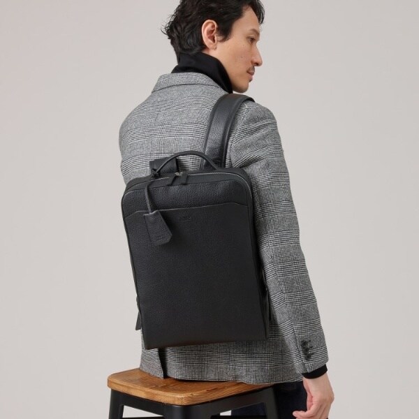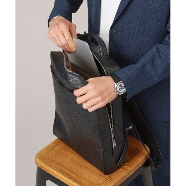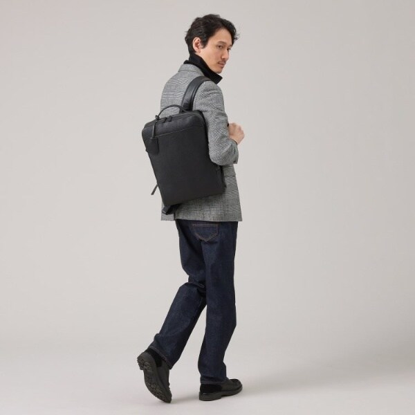 フルベジタブルタンニングのレザーを使用した洗練されたシンプルなフォルムが魅力のバックパック。