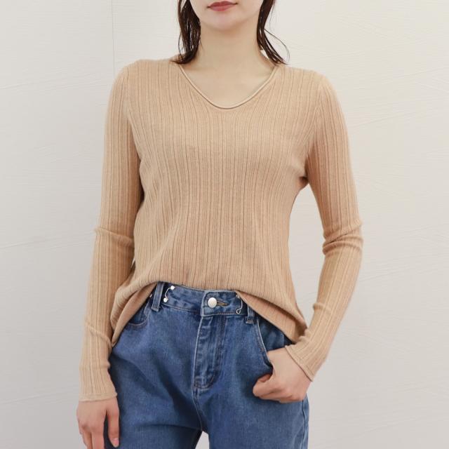 ミニミニストア(miniministore)/Vネックニットトップス 韓国風リブニット