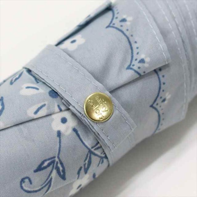 標準的なレディースサイズの折りたたみ傘より親骨が5cm長い親骨55cmサイズの折りたたみ傘です。手元部分を小さくしたので、たたんだ時も大きく見えず、開いたら親骨50cmサイズの傘より直径が約8cm大きくなり、傘生地の表面積が約2割アップ。広くカバーできるので肩やリュックなどが濡れにくくなり、雨の日も安心です。指や爪をはさみにくい「安全ろくろ(ストッパー)」を使用しているので、ボタン部分を押して開閉でき安心してお使いいただけます。中芯入りのシンプルなケースなのでかさばらずにバッグに収納できます。コロンとした形の刻印入りの手元もキュートです。本製品は雨傘としてご使用いただくことを主としていますがアクリルコーティング加工を施しているため紫外線防止効果があります。紫外線遮蔽率は濃色生地で約90%、淡色生地で約80%が目安となります。