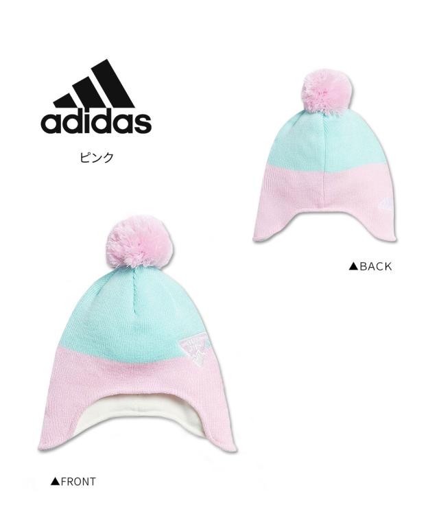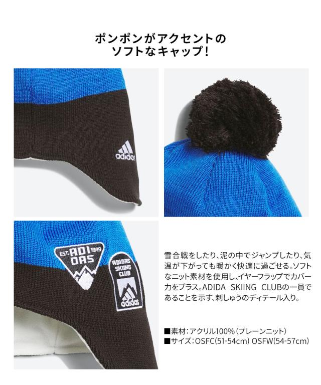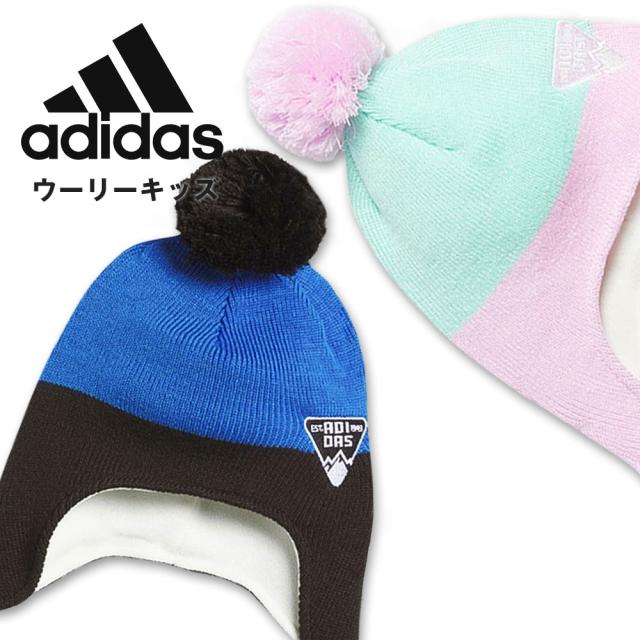アディダス 子供 ニットキャップ ポンポン ニット帽 ロゴ ウーリーキッズ 人気 イヤーフラップ 暖かい 冬 雪 アクリル アメカジ ストリート スポーティ アウトドア ユニセックス 帽子 秋 冬 黒 ブラック オーキッドフュージョン adidas IK4814 IK4815