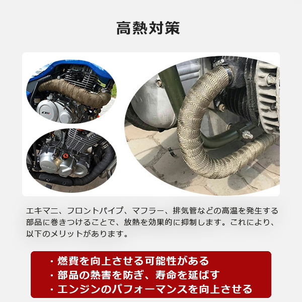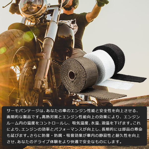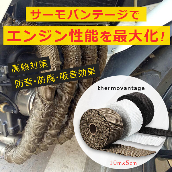 サーモバンテージ 10M ロング結束バンド付 耐熱 バンテージ 耐熱バンテージ 車 バイク マフラー エキマニ フロントパイプ 耐熱布 保護 エキゾースト マニホールド 耐熱テープ エンジンルーム