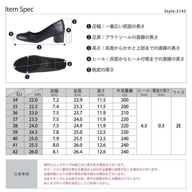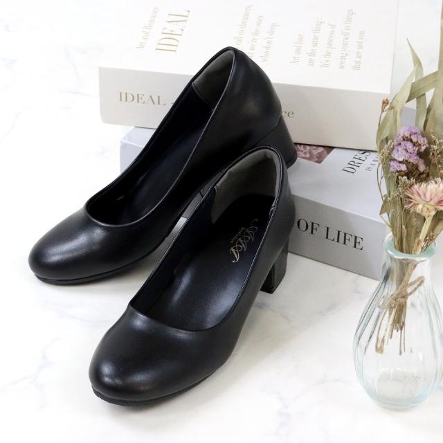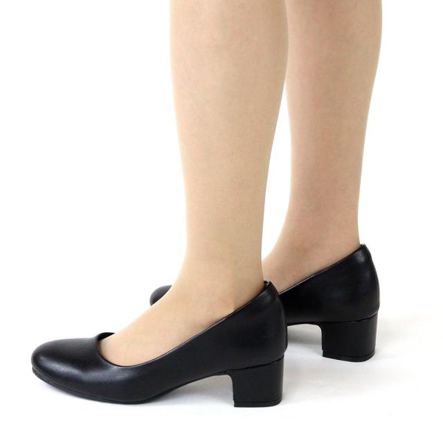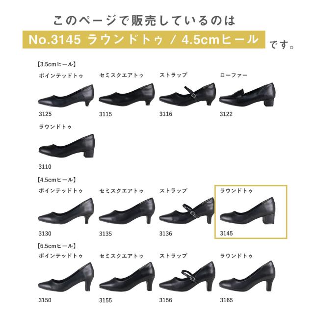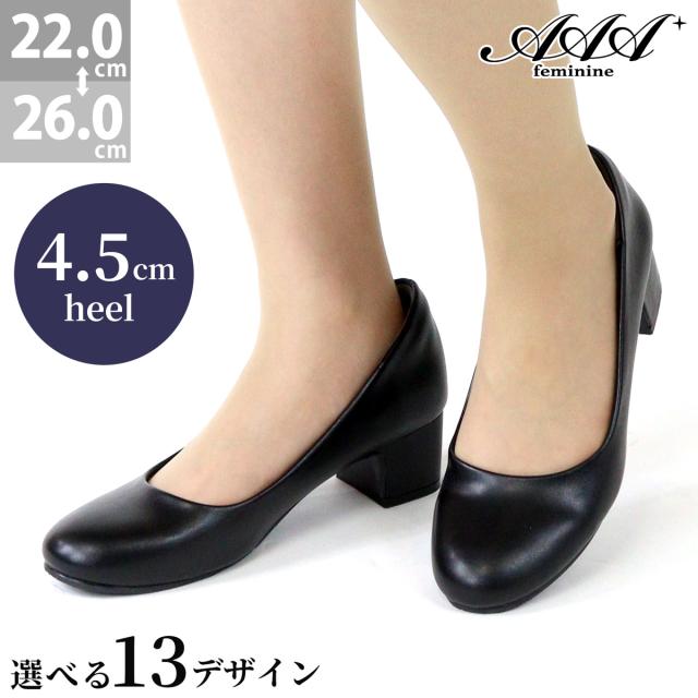 パンプス フォーマル 痛くない ラウンドトゥ ミドルヒール 4.5cmヒール No.3145 22.0-26.0cm 黒 サンエープラスフェミニン 3110sr