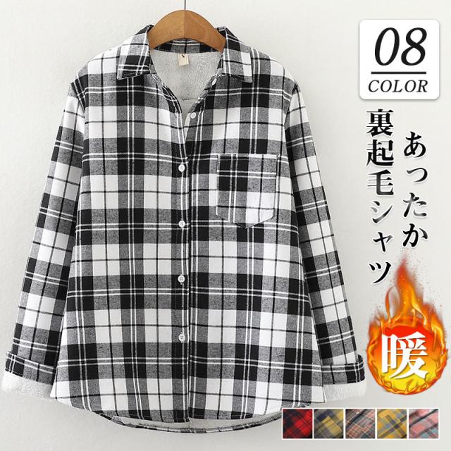 裏起毛シャツ レディース ブラウス チェック柄 長袖 アウター 防寒 ボア付き 開襟 おしゃれ あったか もこもこ 保温 厚手シャ