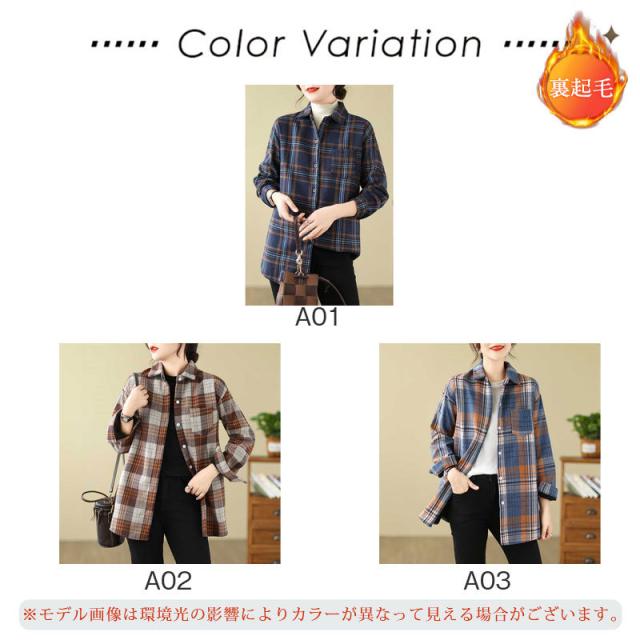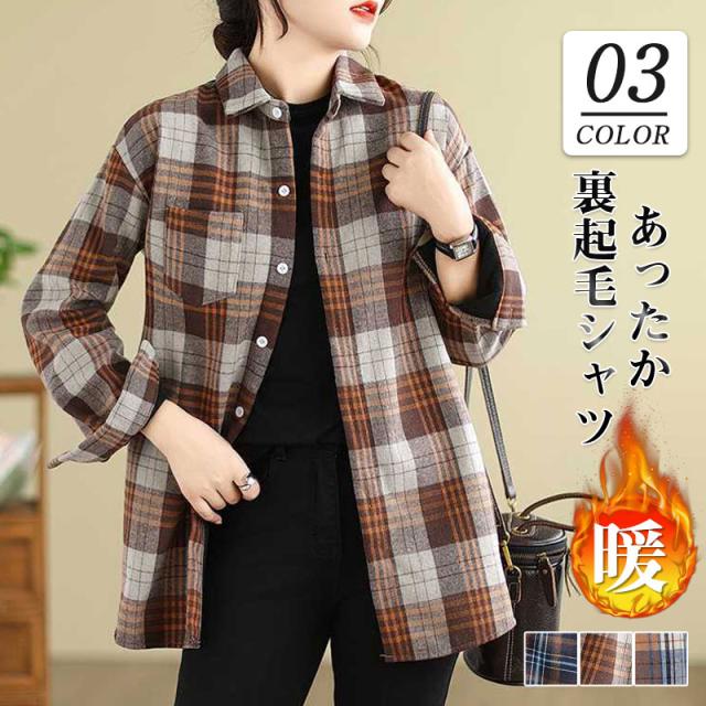 裏起毛シャツ レディース ブラウス チェック柄 厚手 長袖 アウター 防寒 開襟 おしゃれ あったか もこもこ 保温 厚手シャツ