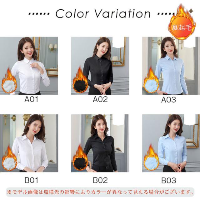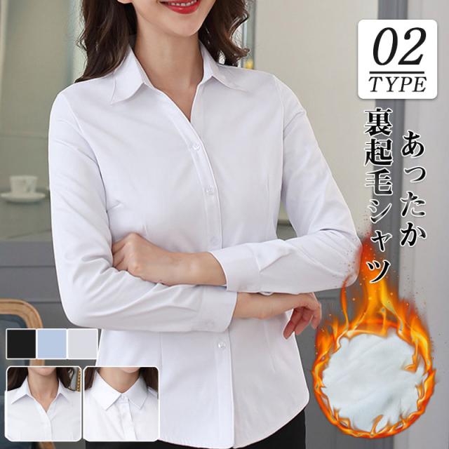 裏起毛シャツ レディース ブラウス 長袖 アウター 防寒 通勤 ビジネス 開襟 おしゃれ あったか もこもこ 保温 厚手シャツ 秋