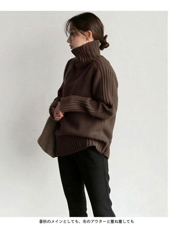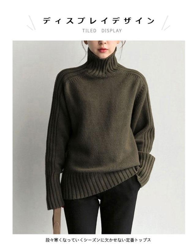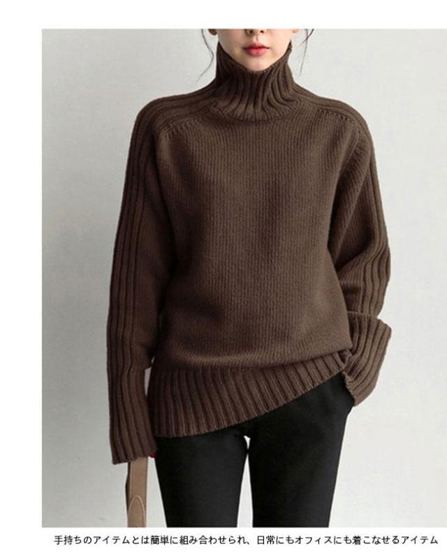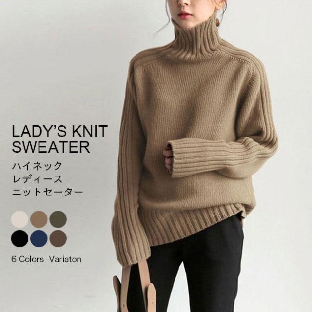 ニットセーター レディース セーター ハイネック ゆったり ニット ケーブル編み 秋 冬 ニットトップス おしゃれ タートルネック ニットセーター オフィス ブラック シンプル ブラウン トップス 暖かい ニット レトロ