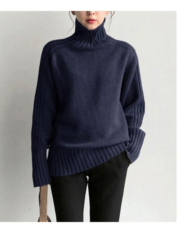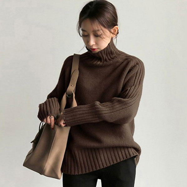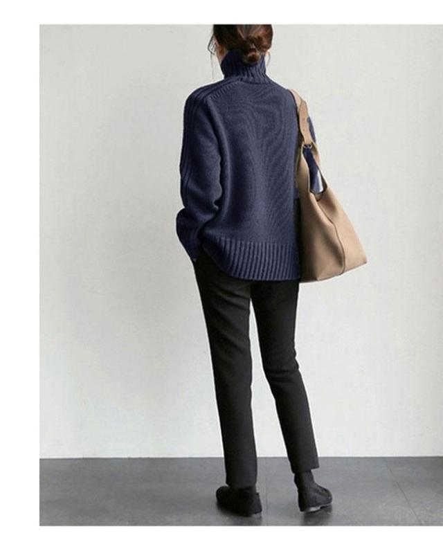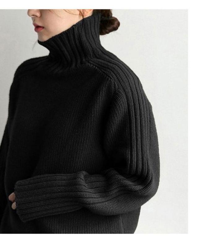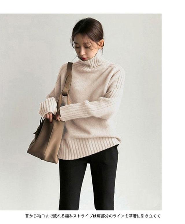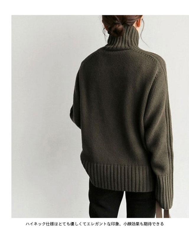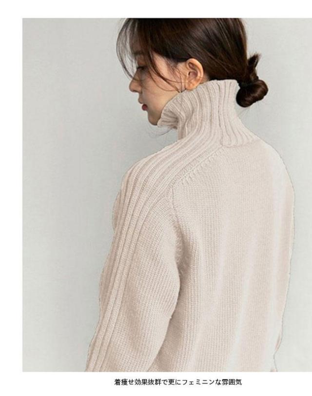 ■小顔効果バッチリのハイネック レディースケーブル編みニットセーター