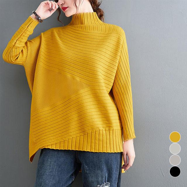 ニットセーター ハイネック レディース ニット セーター オーバーサイズ トップス 抜け感 オフィス ニットトップス おしゃれ 不規則裾 レディースセーター ゆったり カジュアル