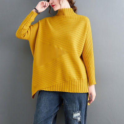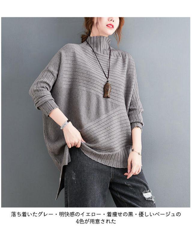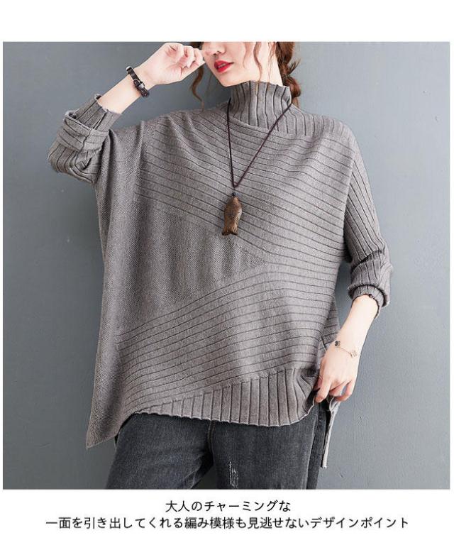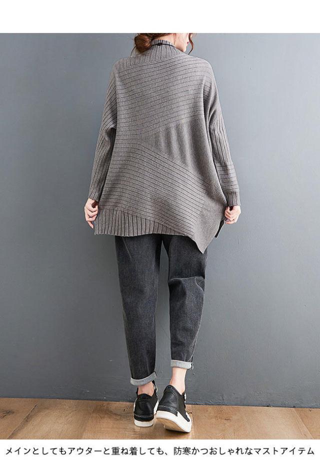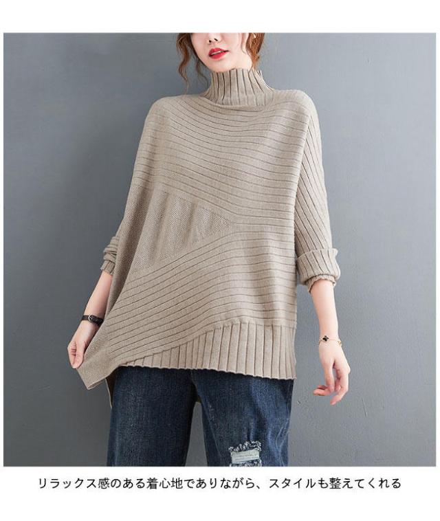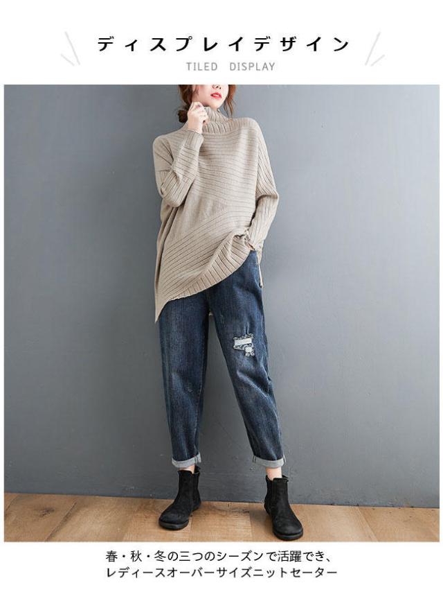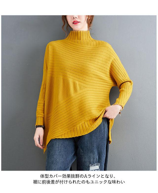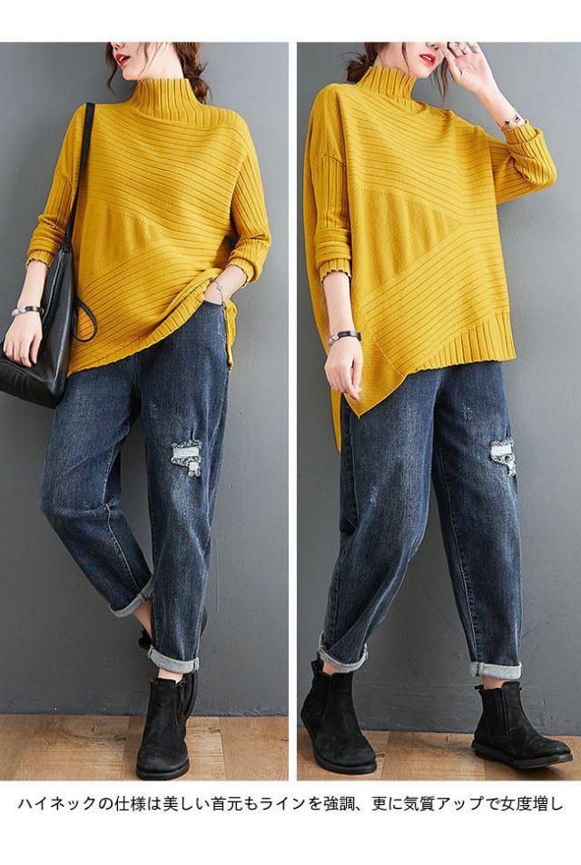 ニット セーター 長袖 ニットセーター ハイネック レディース ニット セーター オーバーサイズ トップス 抜け感 オフィス ニットトップス おしゃれ 不規則裾 レ