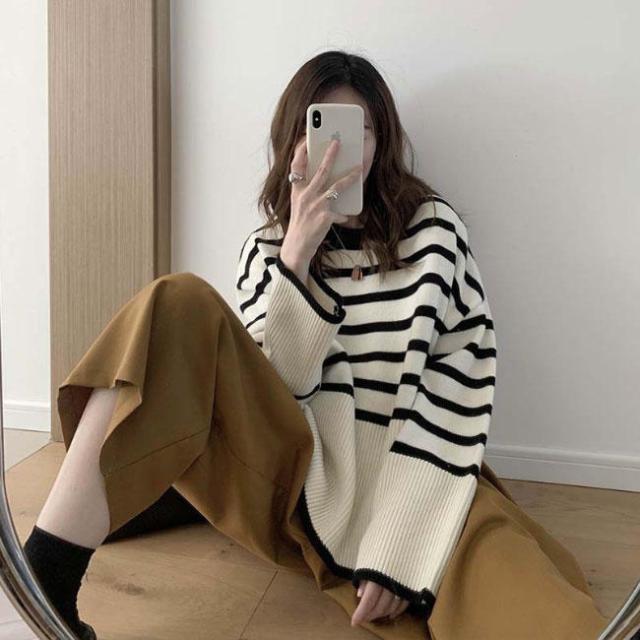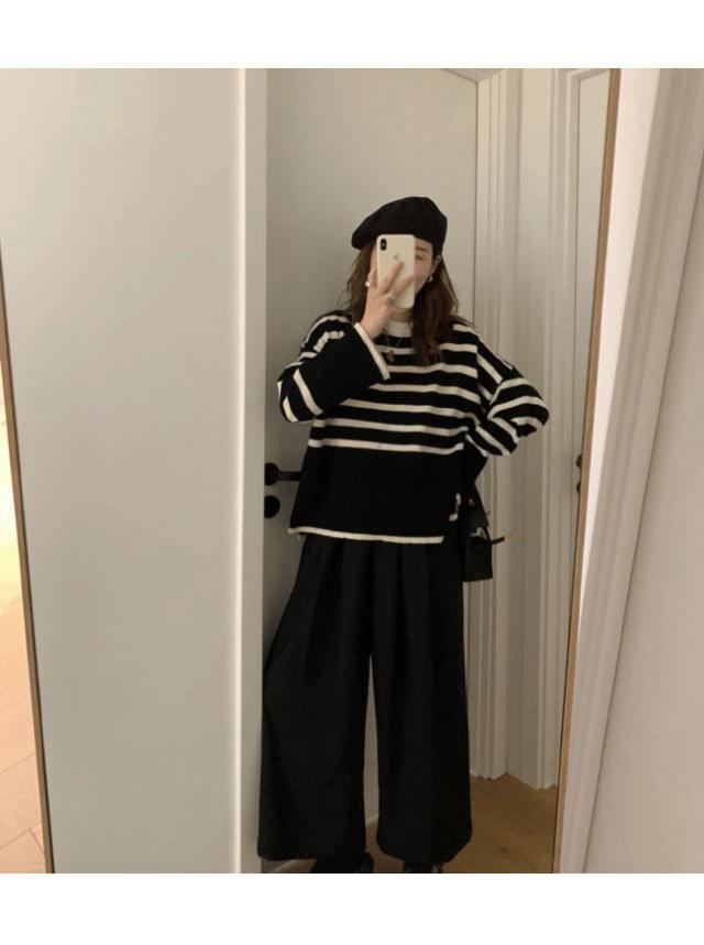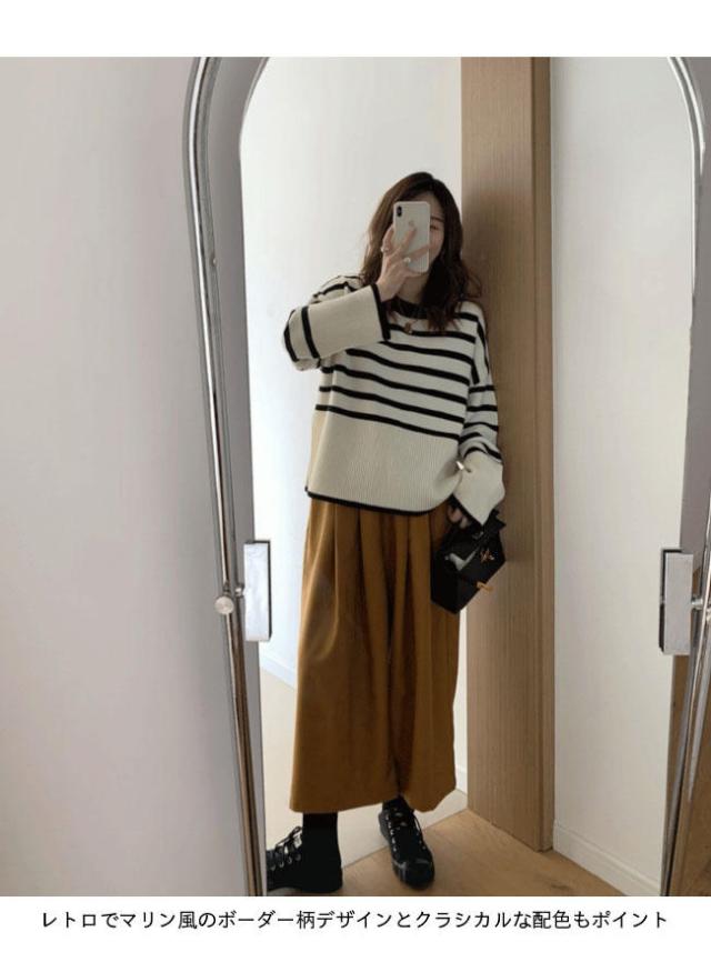 ■レトロで爽やかなボーダー柄 オーバーサイズニットセーラー