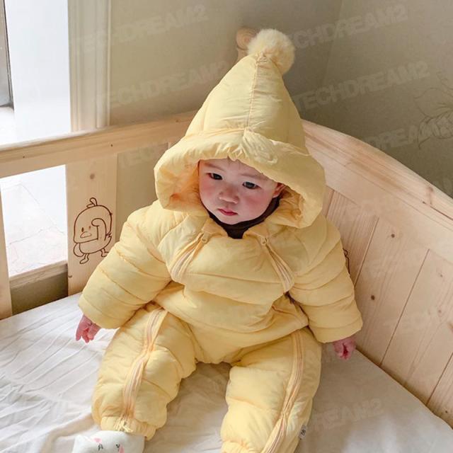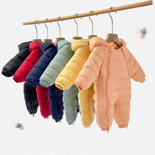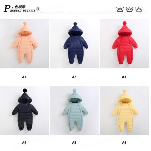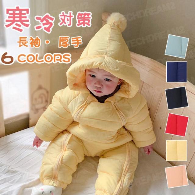 ベビー服 ジャンプスーツ カバーオール 長袖ロンパース ダウンコート フード付き 防寒 秋冬用 男の子 女の子