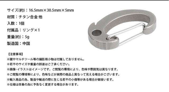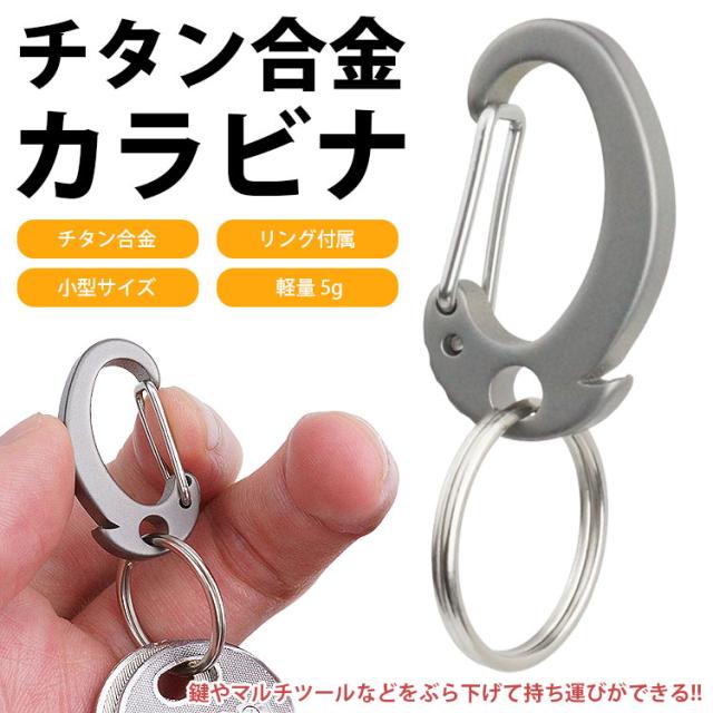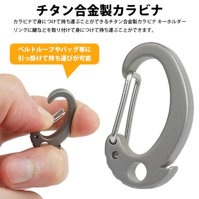 キーホルダー キーリング カラビナ チタン合金製 小型 軽量 持ち運び コンパクト アウトドア 鍵 カギ