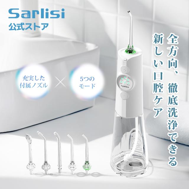 「おまけ付き」 口腔洗浄器 ジェットウォッシャー 歯垢除去 口腔ケア IPX7防水 300ml ノズル5本付き 歯間 歯周ポケット舌磨き 歯石除去 ウォーターフロス ウォーターピック 5つモード調整可能 2000mAh コードレス 日本語取扱説明書付
