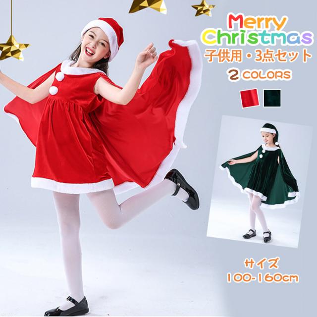 2点で10%OFF!サンタ コスプレ衣装 女の子 ポンチョ サンタクロース キッズ クリスマス コスチューム 子供服 帽子付き ジ