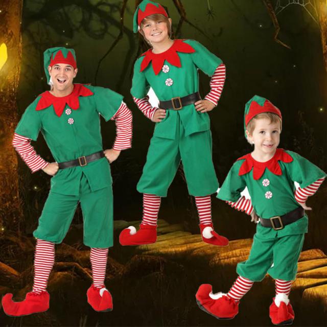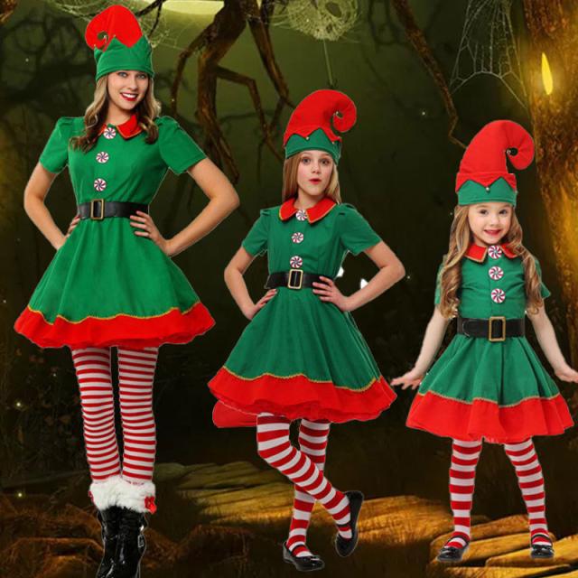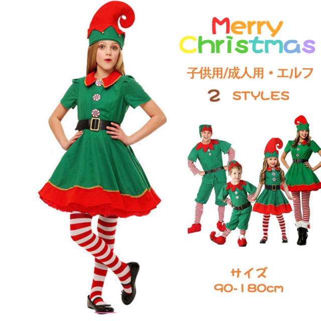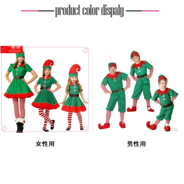 2点で10%OFF!クリスマス衣装 親子揃い エルフ 妖精 緑 コスチューム コスプレ サンタクロース 子供 男の子 女の子 大人