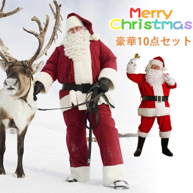 2点で10%OFF!【10点セット】サンタクロース 衣装 男性 サンタ コスプレ メンズ 大人 サンタコス コスチューム クリスマ