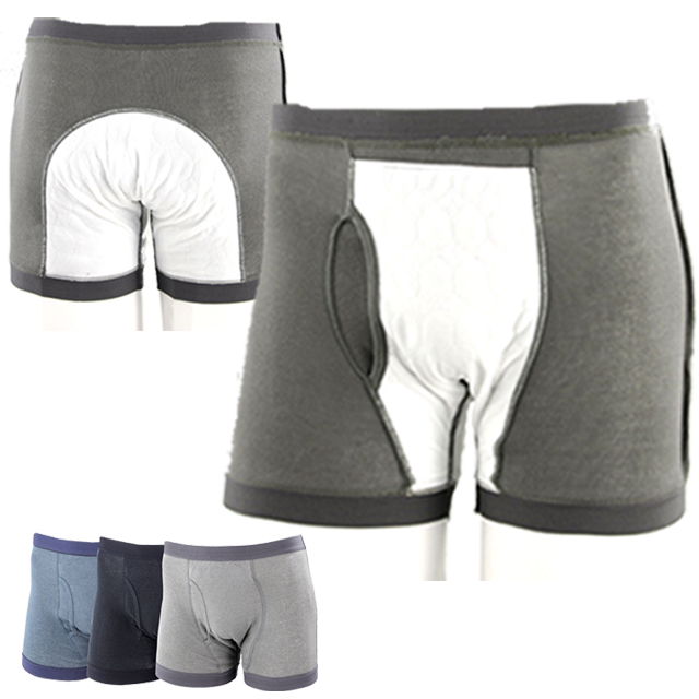 通常のボクサーパンツにしか見えない!失禁対策おしりまで安心ニットトランクス[3色セット] (便漏れ 横漏れ 残尿感)