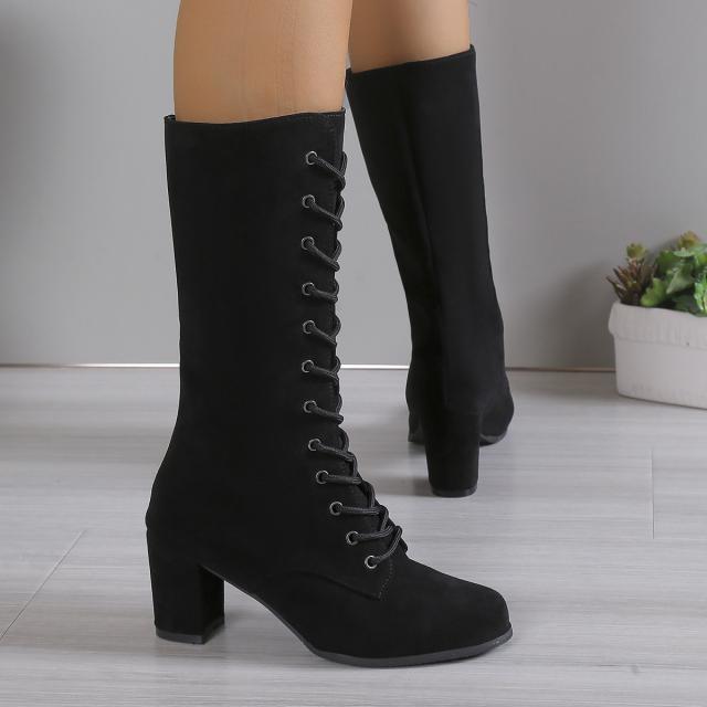 ロングブーツ レディース メンズ レースアップ 編み上げ 卒業式 袴向け 靴 レースアップブーツ 黒 袴用ブーツ 編み上げブーツ