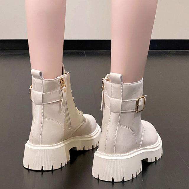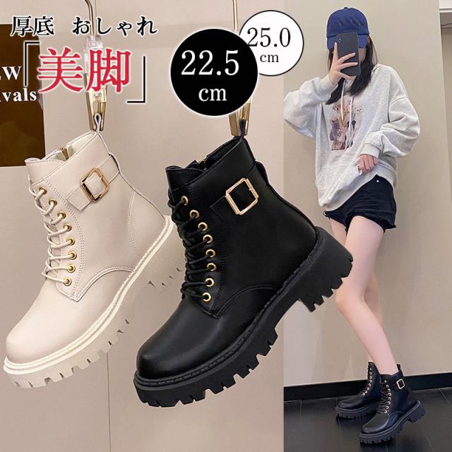 ■特徴:レースアップブーツ 編み上げブーツ ショートブーツ ショート丈 サイドジップ ファスナー 紐靴 厚底 美脚 スタイルアップ 履きやすい 歩きやすい 痛くない シンプル カジュアル おしゃれ 旅行 滑りにくい 靴 シューズ 男女兼用 ユニセックス 小さいサイズ 大きいサイズ レディース メンズ 黒 ブラック 白 ホワイト アイボリー 4.5cmヒール