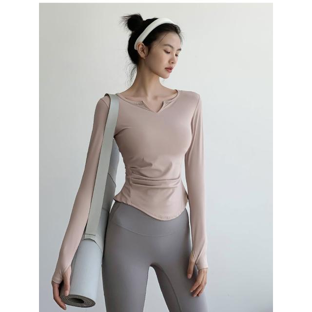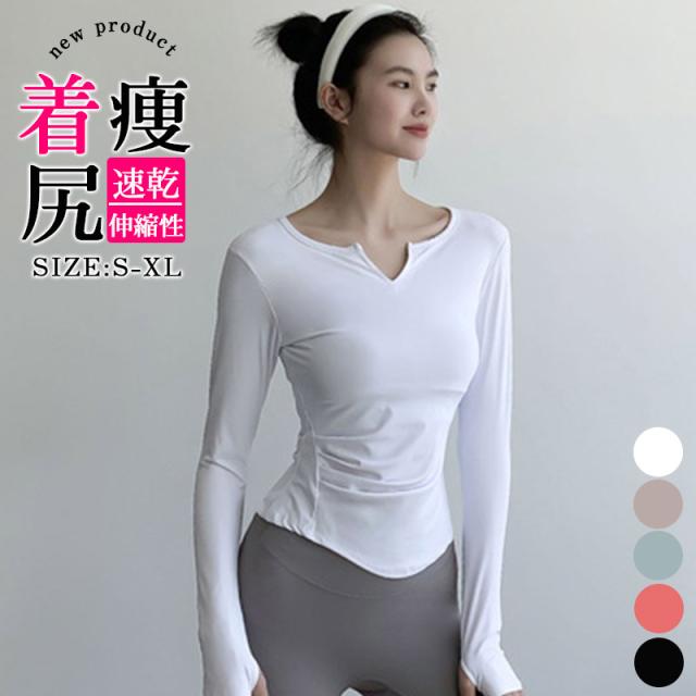 ヨガウェア トップス レディース 長袖 長め おしゃれ 安い スポーツウェア 吸汗速乾 Vネック スポーツ Tシャツ レディース