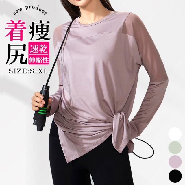ヨガウェア トップス レディース 長袖 長め おしゃれ 安い スポーツウェア ブランド 吸汗速乾 体型カバー スポーツ Tシャツ