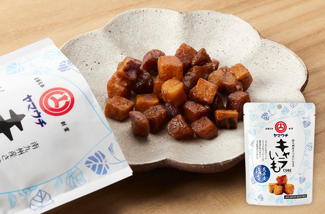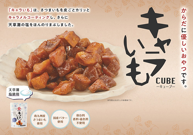 ・南九州産のさつまいもを皮ごと揚げ、キャラメルでカリッとコーティングしたお菓子です。