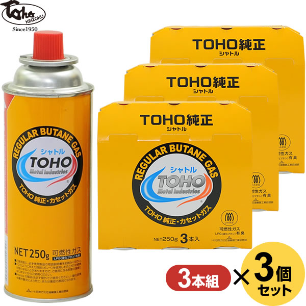 ガスボンベ トーホー シャトル カセットボンベ 3本組 3個(9本入)| TOHO カセットガスボンベ 鍋 カセットコンロ 卓上コンロ アウトドア 災害用 燃料 CB缶