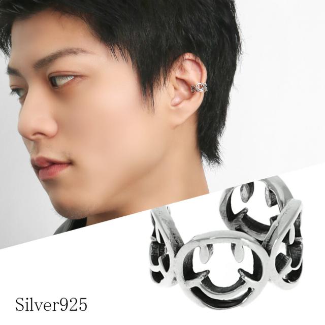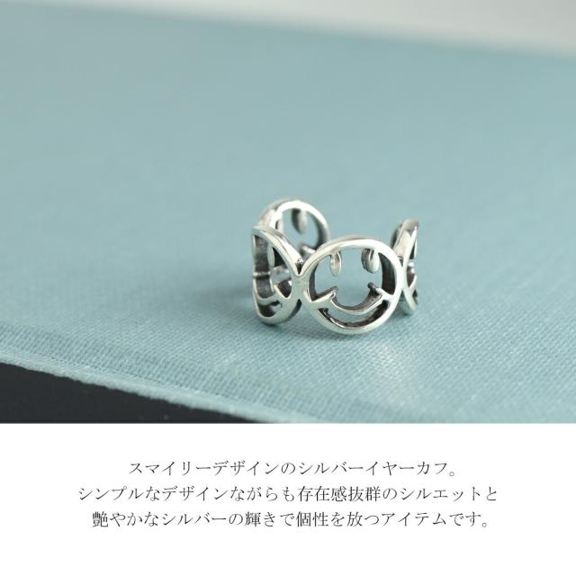 透かし スマイリー イヤーカフ 1P 片耳用 シルバーアクセサリー ノンホールピアス シルバー925 銀 シルバー 笑顔 スマイル ニコちゃん 顔文字 絵文字