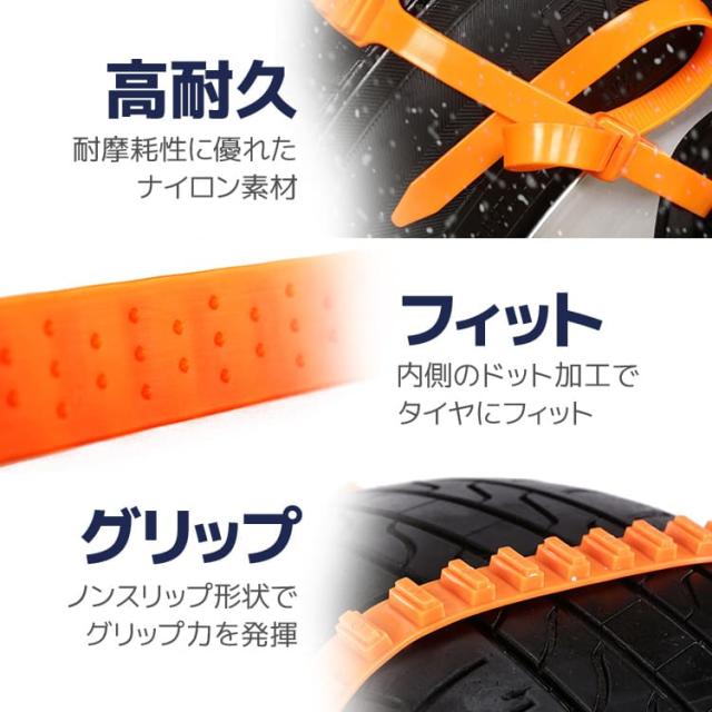ジャッキアップ不要で簡単に取り付けできる非金属タイヤチェーン20本セットです。