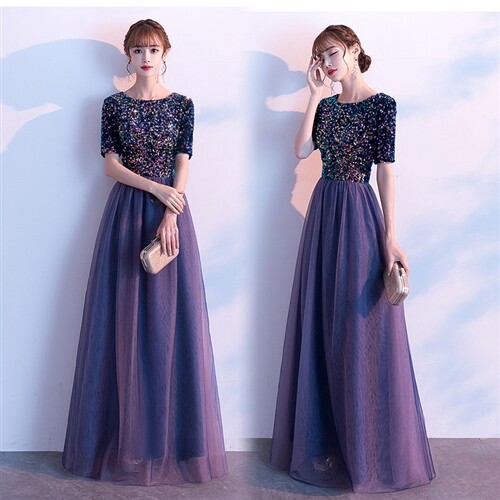 ☆煌めくスパンコール装飾デザインが豪華で目を惹くロングドレス