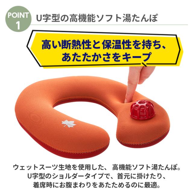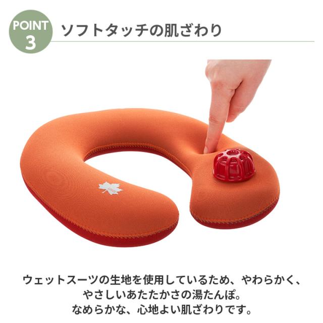 【特徴】ウェットスーツ生地を使用しているため、カバーなしでそのまま使用でき、肌ざわりの良いやわらかな湯たんぽ。
